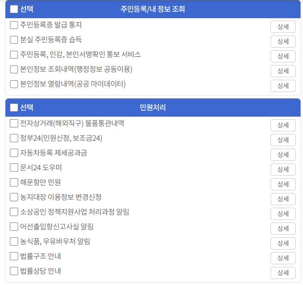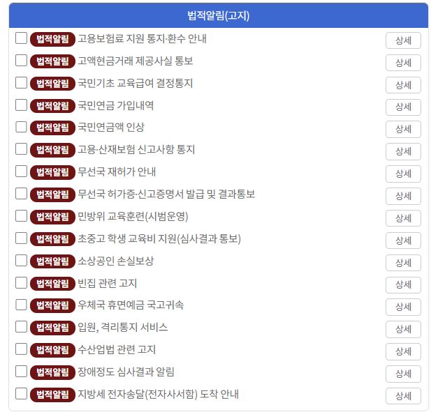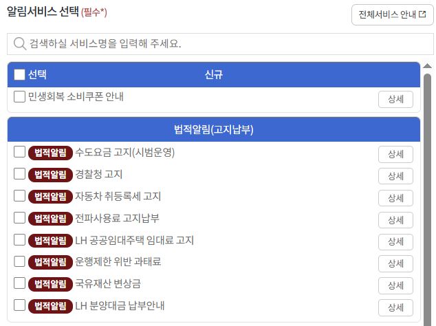 | 납부알림 | 자동차세, 주민세, 건강보험료 등 |